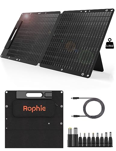 Rophie 100 W solpanel, vikbar solpanel monokristallin solmodul med MC-4-utgång för powerstation, 3,3 kg ultralätt, justerbart ställstativ, IPX67 solpanel för camping, resor, balkong