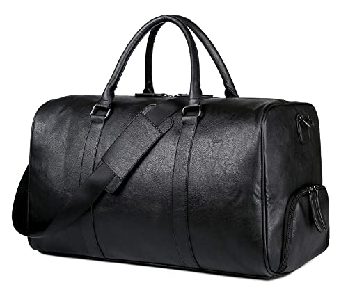 OCCIENTEC Resväskor män PU-läder vattentät vikbar väska stor kapacitet resväska sportväska unisex vintage handbagage väska, svart, 39L-Groß, Klassisk