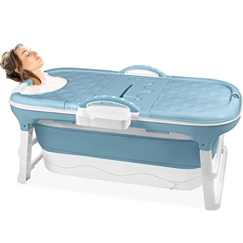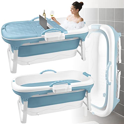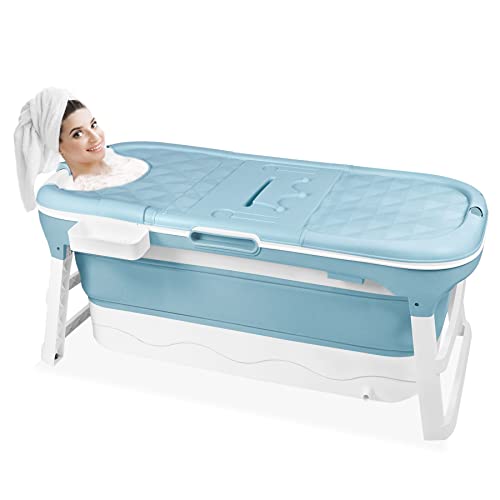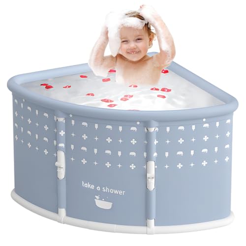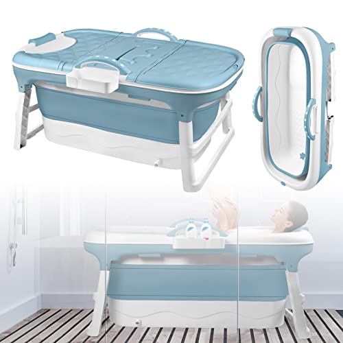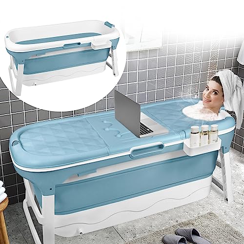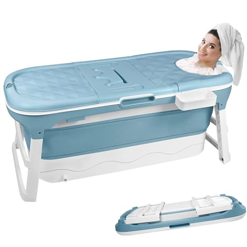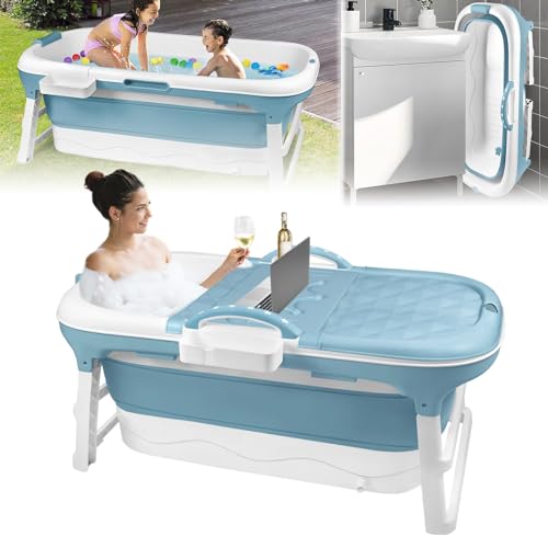 HWGING Hopfällbart badkar, 120 x 60 cm, mobilt bärbart badkar, vikbart, set, för bad, stående badkar för familj och badrum, spa-badkar (blått – B)