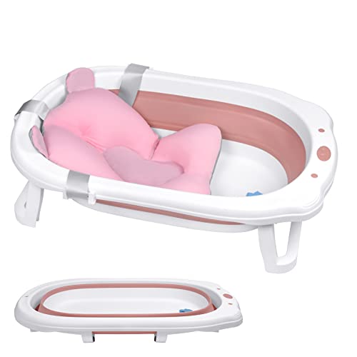 UISEBRT Vikbart Badkar babybadkar, babybad med badkudde, ergonomisk platsbesparande halkfritt badkar för nyfödda, spädbarn 0 månad+, Rosa