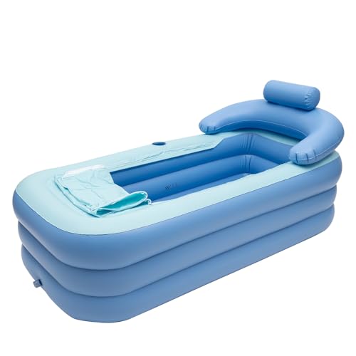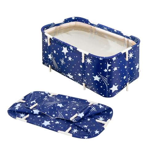 Sinbide Vikbart badkar för vuxna 133 x 64 x 47 cm, bastu ångbadhink, varm dusch och isbad, bärbar icke uppblåsbar (blå vit)