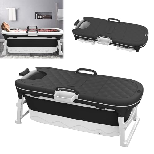 JNGLGO Vikbart badkar vuxen L 118 x 62 x 53 cm, hopfällbart mobilbadkar med lock, nackstöd och tvålkorg fällbart badkar för badrum