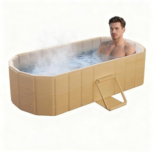 NArra Bärbart vikbart badkar för vuxna, 2-i-1 hot bath & isbad, stor storlek fristående blötläggning bad, förtjockad isolering SPA, bastu, par duschkar, 150 x 55 x 53 cm/4,92 fot