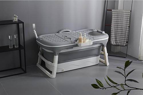 Froadp Fällbart Vikbart Badkar Vuxen Mobila Badkar för Barn med Lock & Hyllor & Ledstänger Fristående Vikbara Bastu Badkar Bärbart Hopfällbart Duschbad för Badrum och Utomhus Trädgård (128x60x53cm)