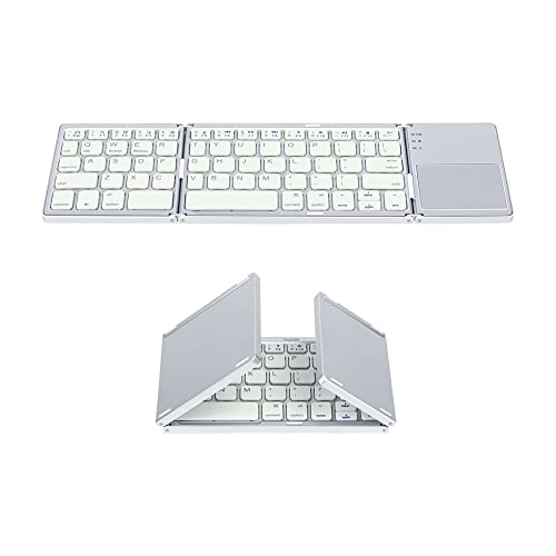 Mcbazel Uppladdningsbart hopfällbart Bluetooth-tangentbord, bärbart vikbart trådlöst tri-tangentbord med pekplatta för mobil enhet kompatibel med surfplatta/mobiltelefon/PC – silvervit
