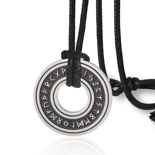 VASSAGO Vintage nordiska vikingarunor halsband, Corsair Runic äldre Futhark ring cirkel talisman hänge läderkedja, viking gåva smycken för män kvinnor, Rostfritt stål, Ingen ädelsten