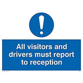 Viking Signs skyltar MV317-A3L-3D "Alla besökare och förare måste anmäla sig i receptionen", 3 mm styv dubbelsidig PVC, 300 mm H x 400 mm B
