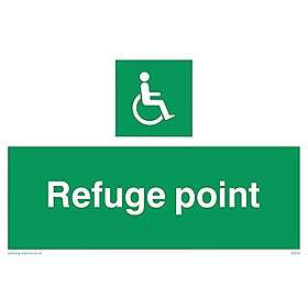 Viking Signs SD455-A2L-3D "Refuge Point"-skylt, 3 mm dubbelsidig styv PVC, 400 mm H x 600 mm B