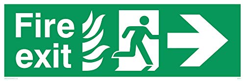 Viking skyltar SG701-L62-3D "Fire exit" löpning man högerpil skylt, 3 mm dubbelsidig styv PVC, 200 mm H x 600 mm B