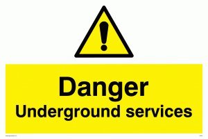 Viking Signs WC491-A2L-3D "Danger Underground Services"-skylt, 3 mm dubbelsidig styv PVC, 400 mm H x 600 mm B