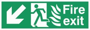 Vikingskyltar SG697-L62-3D "Fire Exit" Löpande man vänster ängel nedåtpilskylt, 3 mm dubbelsidig styv PVC, 200 mm H x 600 mm B