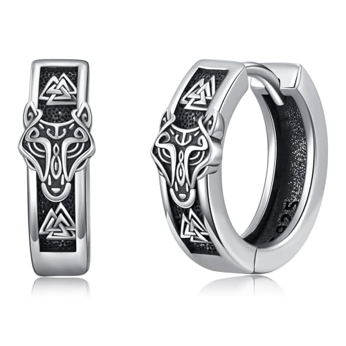PARYFO viking kreolsk örhängen för män 925 sterlingsilver nordiska varg örhängen varg kreoler viking smycken presenter för män pojkar kvinnor unisex, Sterlingsilver, Kubisk zirkonia