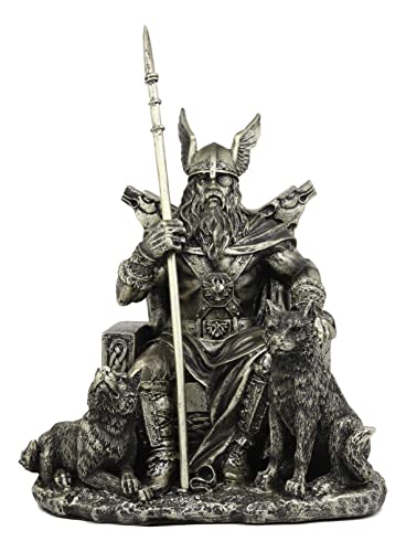 Ebros gåva nordisk viking mytologi Odin alfadern sitter på en tron med två varg hundar staty norselansk folklore Thor Ragnarok trilogi Wotan dekorativ figur 26,7 cm hög