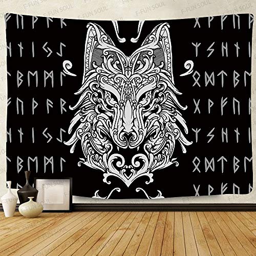 F-FUN SOUL Viking gobeläng för män dekor 80 x 60 tum viking varg gobelänger meditation runor antik konst vägghängande gobelänger för vardagsrum sovrum dekor GTZYFS419