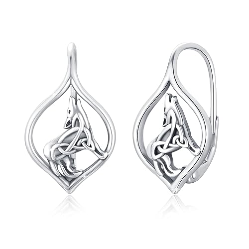 Varg örhängen för kvinnor män 925 sterlingsilver vargsmycke smycken present viking varg kreoler örhängen, Sterlingsilver, Ingen ädelsten