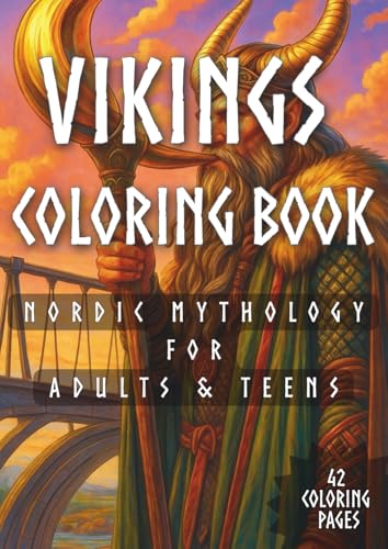 Viking Coloring Book: About Nordic Mythology, Vikings, Valhalla, Nordic Beasts, Warriors, Women Vikings, Axes and Shields | 8x12 inches, 84 Large ... | Gift for Vacations, Holidays and Free Times