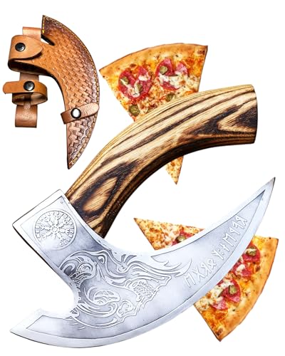 CraftTal Pizzayxa viking med läderskydd – pizzamkniv för riktiga vikingar – pizzaskäraryxa perfekt som vikingardekoration – vikingayxa, pizzavägkniv, vikingingingingingingskniv, yxa (vit skull)