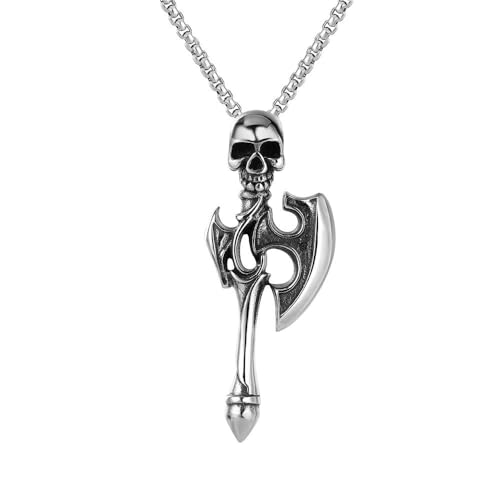 DACKLOONG Viking skalle yxa hänge halsband för män rostfritt stål punk berlock smycken presentförpackning, Zink