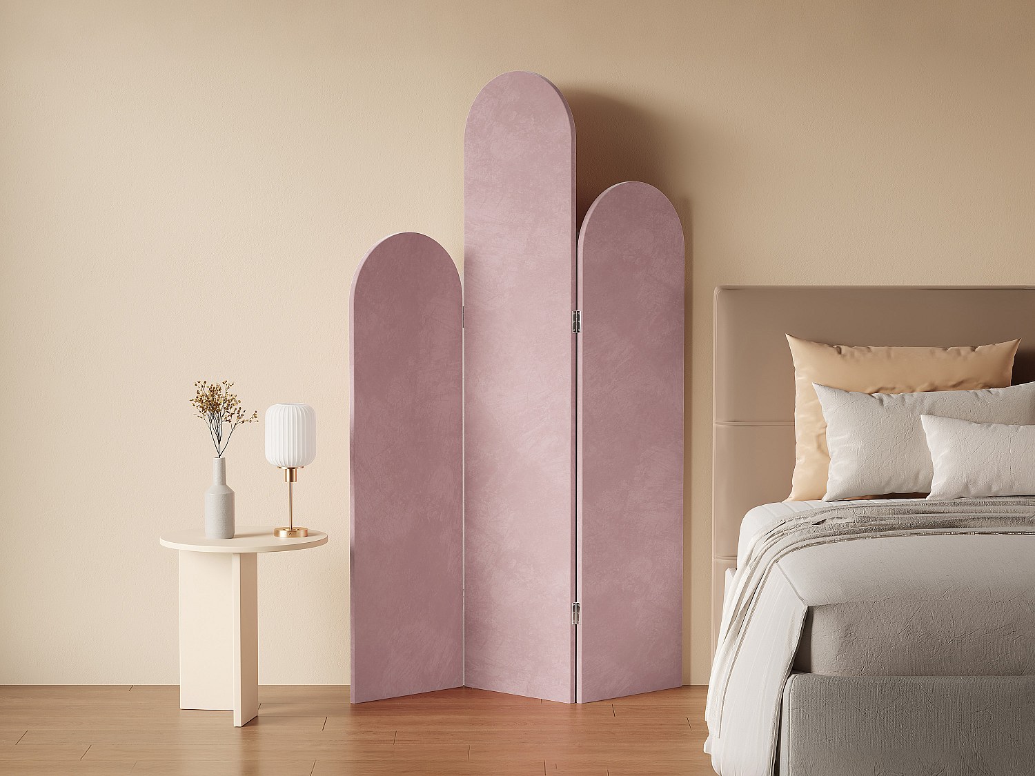 Vikskärm med 3 paneler i sammet 120 x 180 cm VELVET – Rosa