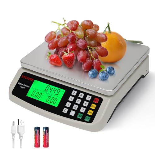 KNSWE Matvåg 10kg Stor Digital Våg Kök Rostfritt stål Vikt Pounds Kilogram och ounces för bakning Matlagning Måltid Prep Kaffe Tara Funktion Exakt räkning och LCD-skärm
