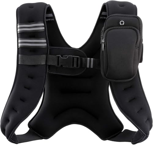 KOMFOTTEU Vikt väst 5/9/15 kg, neopren viktträning, löpväst med reflekterande remsor och justerbara remmar, svart (5 kg)
