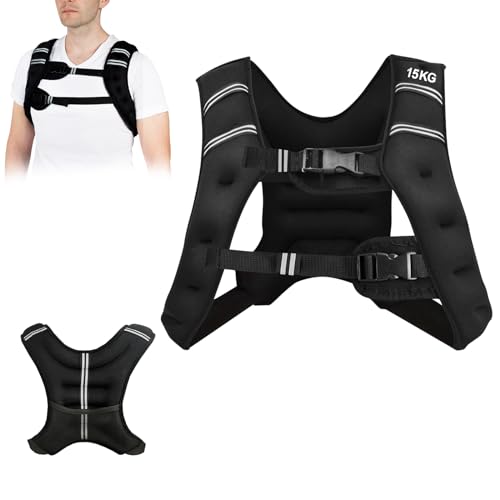 KOMFOTTEU Vikt väst 5/9/15 kg, neopren viktträning, löpväst med reflekterande remsor och justerbara remmar, svart (15 kg)