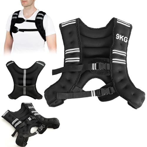 KOMFOTTEU Vikt väst 5/9/15 kg, neopren viktträning, löpväst med reflekterande remsor och justerbara remmar, svart (9 kg)