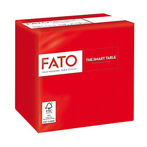 Fato Pappersservetter för engångsbruk, perfekt för aptitretare och cocktails, förpackning med 100 servetter, storlek 24 x 24 vikta i 4, 2 lager, röd färg, 100% rent cellulosa papper, FSC-certifierat