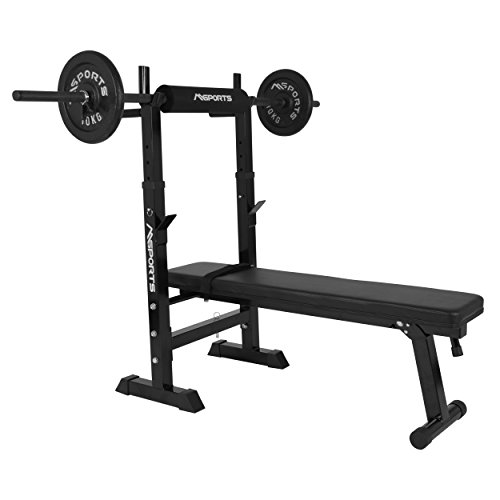 Justerbar viktbänk, gymbänk, träningsbänk för helkroppsträning, vikbar lutning/nedåtlutning bänkpress med vikter och stång, flera positioner, vikbara vikter (MS-1)