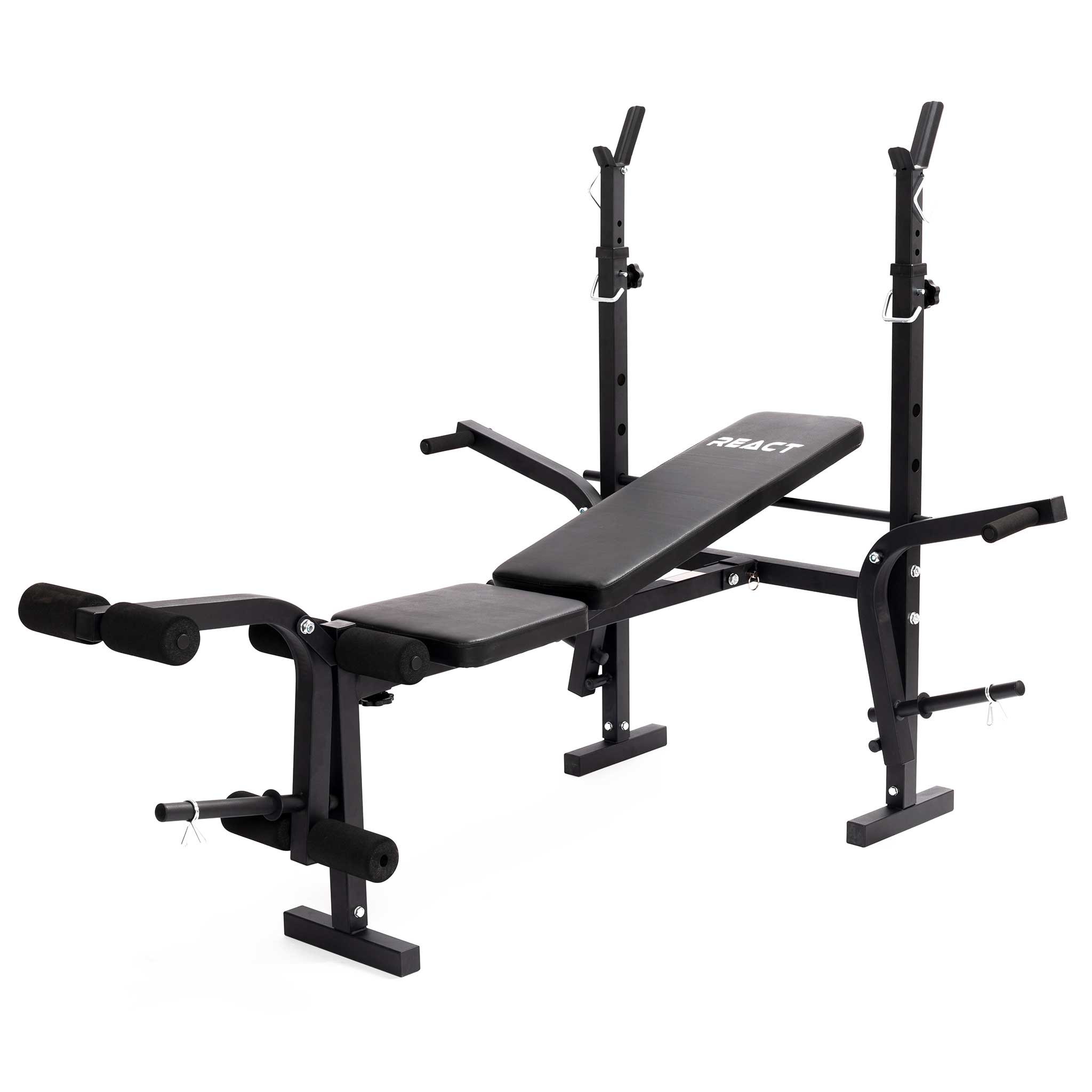 Professionell multifunktionell hopfällbar viktbänk för långa skivstänger upp till 200 kg, viktträning