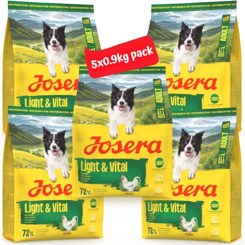 JOSERA Adult Light & Vital kyckling (5 x 900 g) | Premium torrfoder för vuxna hundar | med ärta | Lite fett och mycket protein för viktkontroll | lätt att smälta | vetefri | 5-pack