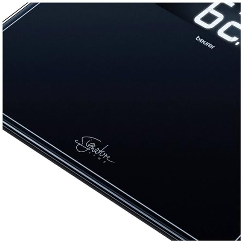 Beurer GS 410 Signature Line, glaspervåg med extremt bred viktplatta av säkerhetsglas, elegant svart skärm i XXL-format och transportkapacitet upp till 200 kg, svart