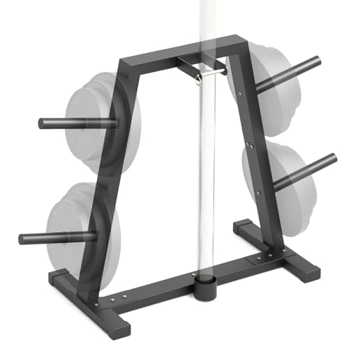 Viktplatteställning, olympisk platthylla, viktförvaringsställ för 2,5 cm viktplattor, olympisk viktplatta, träd – kraftig stötfångarplatta ställ för hemmagym, rymmer 136 kg (300 pund)