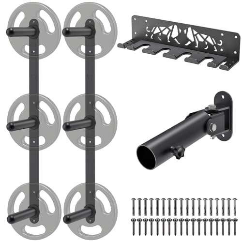 Kipika gym organiseringsset – väggmonterad 3 pinnar viktplatta förvaringsställ (2-pack), skivstångsförvaringsställ med T-bar rad landmine plattformsfäste – hållbar stålkonstruktion, enkel installation