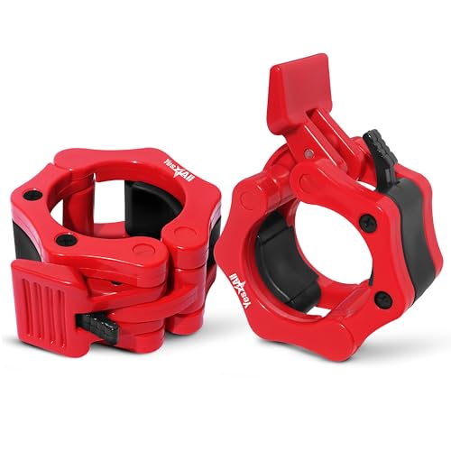Yes4All 5 cm skivstångsklämmor par, Pro Lockjaw kragset för olympisk stång, snabbfrigörande viktplatta lås hantelklämmor för tyngdlyftningsträning och styrketräning (röd)