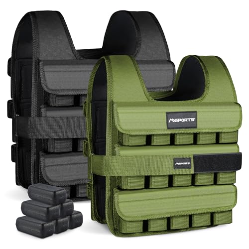 MSPORTS viktväst premium justerbar från 5 kg - 30 kg vikt för träning, styrketräning (30 kg, militärgrön)