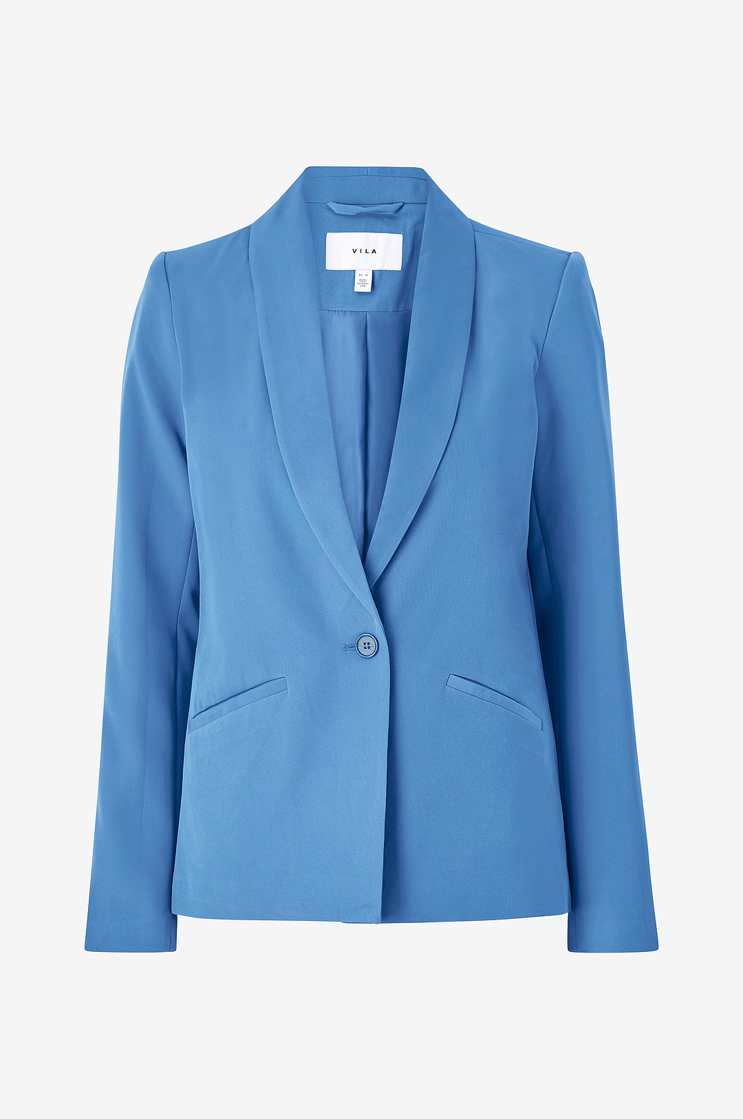 Vila, Jackor , Dam, M, Polyester, Blå Långärmad Blazer med Reverskrage