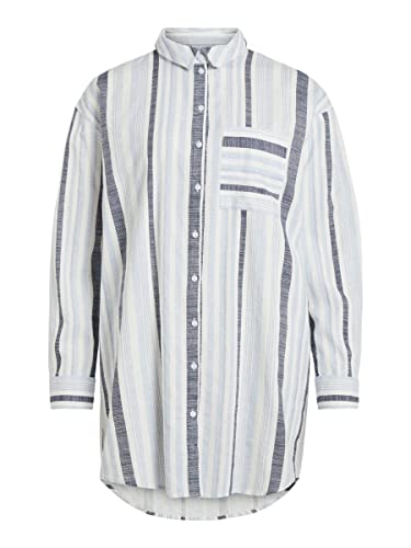 Vila Kvinnors VIETNI L/S lång skjorta blus, molndansare/ränder: Navy blazer kombination, 38