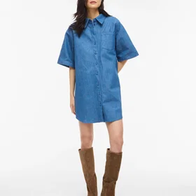 Vikiki L/S denimskjorta klänning MBD, Mellanblå denim, 34