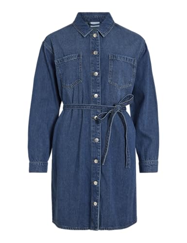 Vila dam Vikiki L/S denimskjorta klänning MBD, Mellanblå denim, 44
