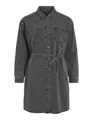 Vila dam Vikiki L/S denimskjorta klänning dgd, Mörkgrå denim, 34