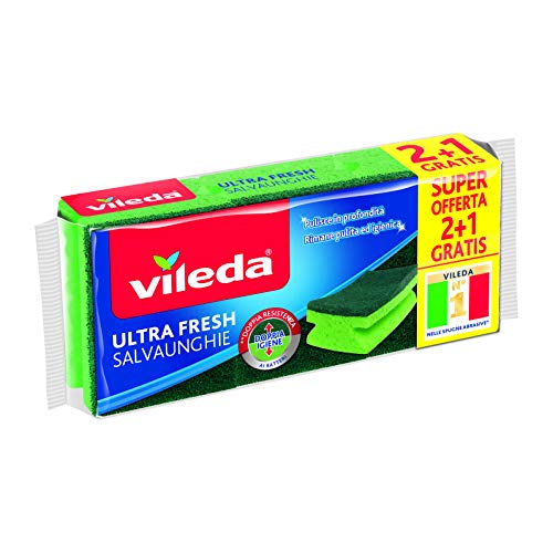 Vileda Ultra Fresh slipsvamp, absorberande, reptålig, med fiberdel, antibakteriell, format 2 + 1, grön