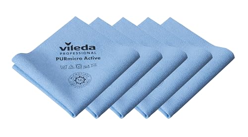 Vileda Professional PURmicro Active mikrofiberduk spårfri, hög absorption, flersidig handduk, professionell användning, glashandduk, 38 x 35 cm, set med 5, blå