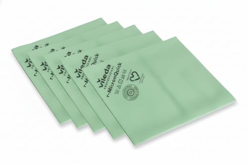 Vileda Professional Mikrofiber r-MicronQuick, Återvunnen duk med flera ytor, maskintvättbar, spårfri, 40 x 38 cm, set med 5, grön