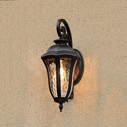 GUOGUOSM European-style Aluminum Material E27 Black Outdoor Wall Lamp, IP23 Waterproof Gate, Villa Outdoor Home Garden Creative Porch Light, Aisle Balcony Courtyard Terrace Lighting