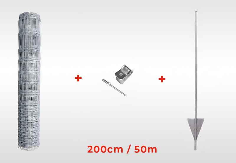 Viltstängsel Kit 200 cm - 50 meter med StapleloK-stolpar