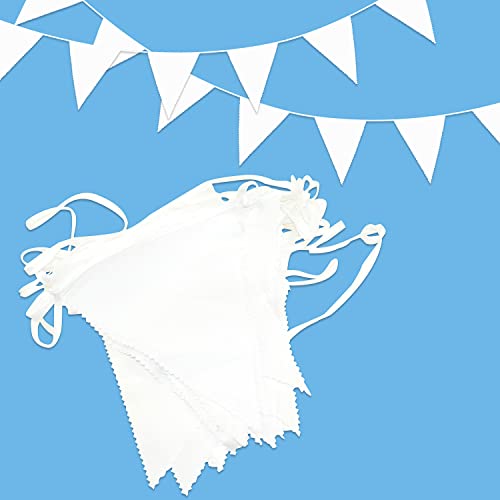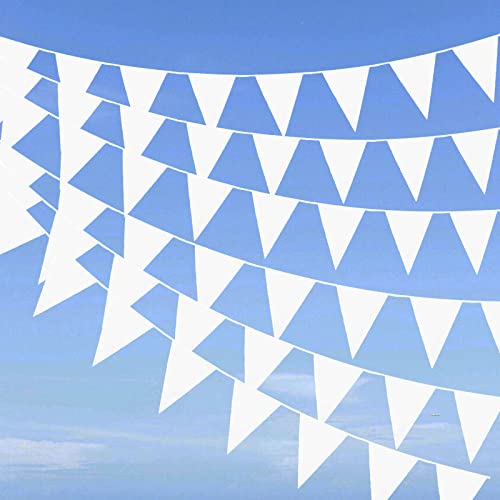 TZQFROCE 12 m vimpelkedja vit – utomhus vimpelkedja tyg vimpel girlang väderbeständig – barnrum bröllop födelsedag fest utomhusdekorationer