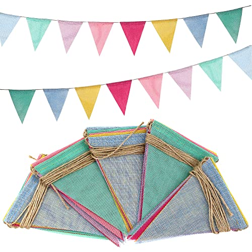 Romon Färgglada flaggor, 2,6 m flaggor krans tyg för barnrum, vimpel kedja bomullstyg muslin, fest födelsedagsfest väggdekor för flickor pojkar barn