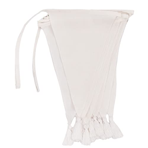 Talande tabeller vitt tyg flaggväv med tofsar, 3 m, triangel flagga vimpel girlang, 100% bomull, heminredning för barnkammartillbehör, inomhus utomhus bröllopsdekorationer, babyshower (WHT-FABBUNT)