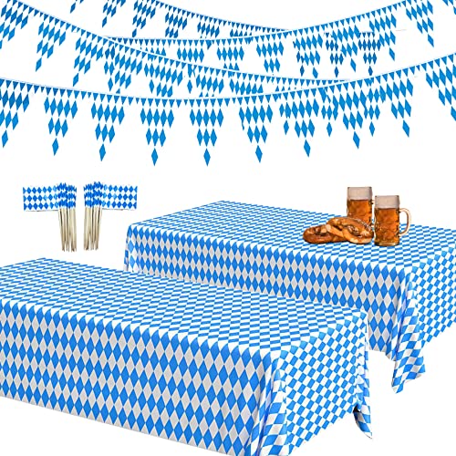 Oktoberfest festdekorationer, 2 blå vit bayersk romb festduk + 20 m bayersk flagga vimpel banderoll + 100 tandpetare flagga, bayersk dekoration, bayersk bordsdekoration, för öltält öl festival München